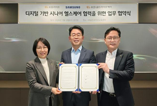 삼성전자는 KB라이프, KB골든라이프케어와 함께 디지털 기반 시니어 헬스케어 서비스 강화를 위한 업무협약(MOU)을 체결했다. 협약은 서울 강남구 KB라이프타워에서 진행됐으며, 각 사 주요 관계자들이 참석해 협력 방향을 논의했다.