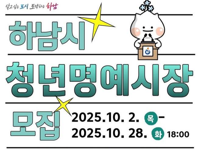 하남시(시장 이현재)가 청년의 시선으로 시정을 함께 만들어갈 `청년명예시장`을 오는 10월 28일까지 공개 모집한다.
