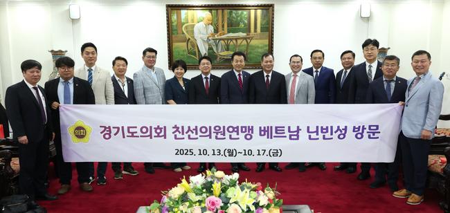 경기도의회 베트남 닌빈성 친선의원연맹(회장 김성수, 안양1) 대표단은 지난 14일 닌빈성 인민의회를 공식 방문하고, 양 지역 간 우호협력 강화와 경제·관광·농업 분야 교류 확대 방안을 논의했다.